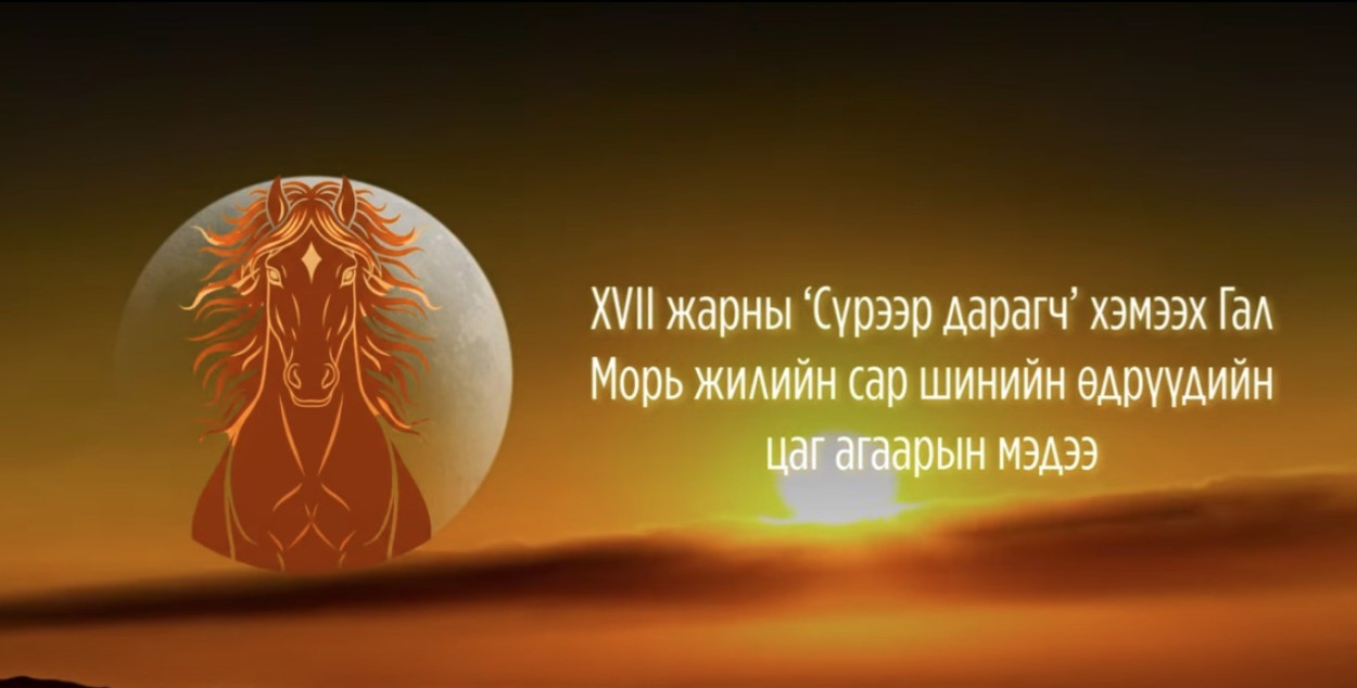 XVII ЖАРНЫ ‘СҮРЭЭР ДАРАГЧ’ ХЭМЭЭХ ГАЛ МОРЬ ЖИЛИЙН САР ШИНИЙН ӨДРҮҮДИЙН ЦАГ АГААРЫН УРЬДЧИЛСАН МЭДЭЭ